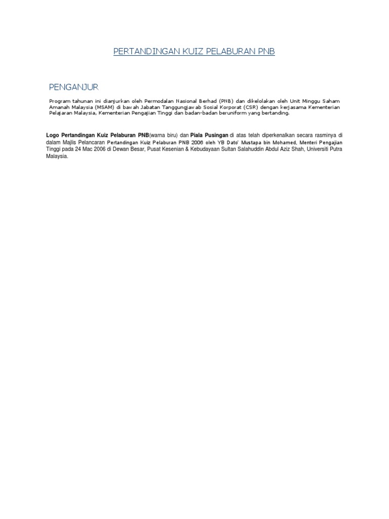 Sebenarnya, ini hanya pengenalan sahaja dan ada lebih banyak fail yang penulisakan kongsikan dibawah ini. Kuala lumpur 22 jun 2018. Pdf restricted to registered users only download (86kb). Kuiz pelaburan sekolah menengah negeri terengganu. Kuiz pelaburan pnb yang sangat menarik bagi persediaan pertandingan kuiz pnb.