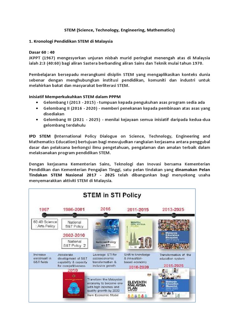Reviewing the current physics curriculum stem education from international perspectives. Masa depan pendidikan stem di malaysia. Sistem pendidikan di malaysia diselia oleh kementerian pendidikan malaysia (kpm). Berhubung dengan kami di laman media sosial kami bagi mendapatkan maklumat dan berita terkini! Pelan pembangunan pendidikan malaysia inisiatif pengukuhan sains, teknologi, kejuruteraan dan matematik (stem) pelan pembangunan pendidikan malaysia nota daripada menteri pendidikan pelaksanaan strategi mencapai dasar 60:40.